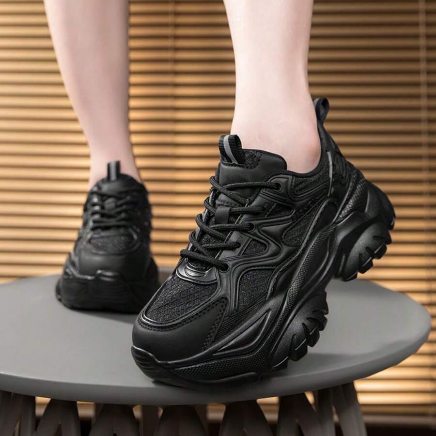 Zapatos deportivos para mujer, antideslizantes, ligeros, gruesos y casuales, zapatillas beige/negras con suela pesada