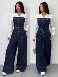 en Manga larga Monos y monos de mezclilla para mujer