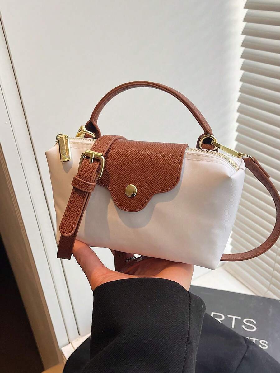 Bolso de mujer de estilo casual y versátil con contraste de tela, bolso cuadrado sencillo, cartera con asa de moda, bolso de estilo retro con correa de hombro desmontable, adecuado para adolescentes, estudiantes universitarias, principiantes y trabajadores de oficina, perfecto para la oficina, la universidad, el trabajo, los negocios y los desplazamientos