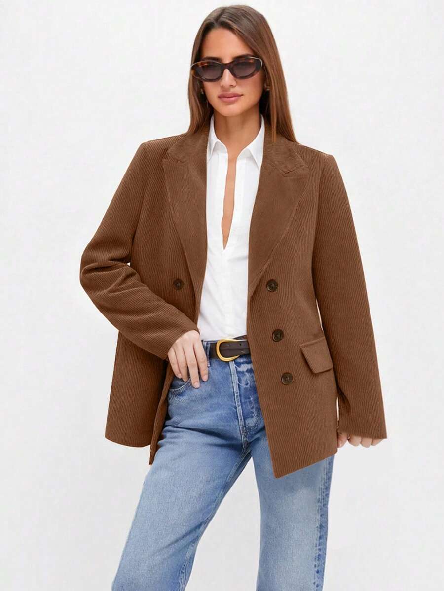 Chaqueta con solapa para mujer, elegante blazer de pana para oficina, otoño