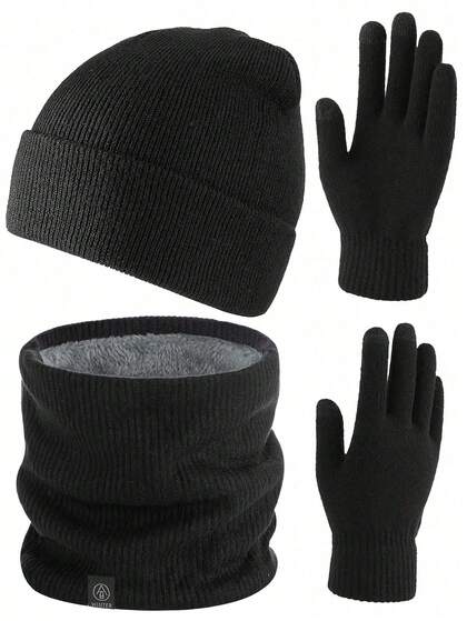 Gorro de punto + Braga de cuello + Guantes Gorro de punto clásico de doble capa Gorros de invierno gruesos y cálidos de acrílico Gorros con puño para uso diario para hombres y mujeres