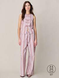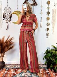 ZivahZivah Conjunto de 2 piezas de blusa con mangas abullonadas y pantalones de pierna ancha para mujer, ideal para primavera/verano, festivales de música, Pascua, San Valentín, citas, estilo occidental, nómada, fiestas de cumpleaños, graduación, campus, uso diario, viajes al trabajo
